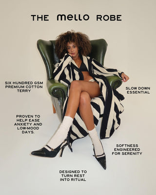 Women told us they wanted something that feels like being held so we created a 600 GSM weighted cotton robe designed to relieve stress, soften anxiety, and bring the body back to calm.